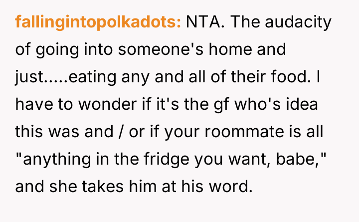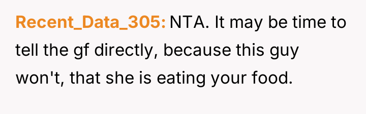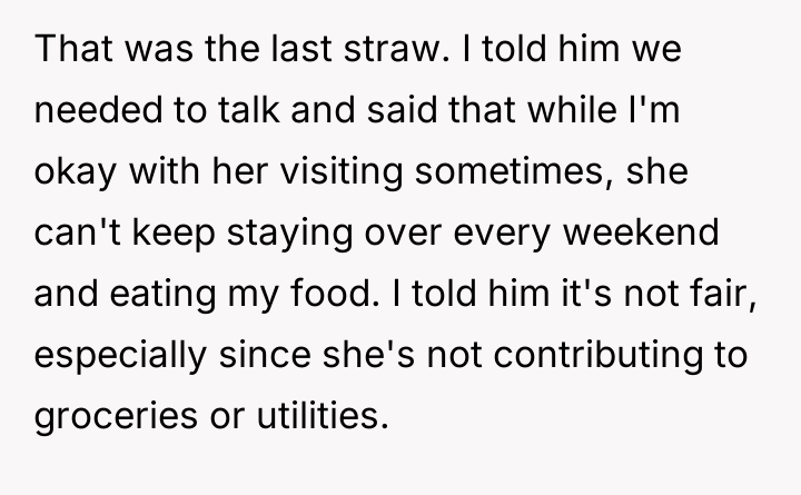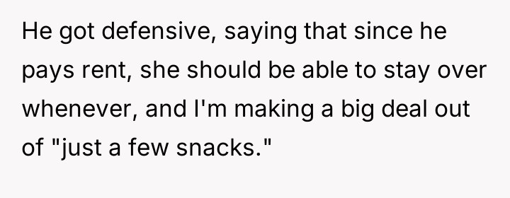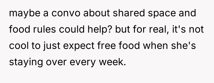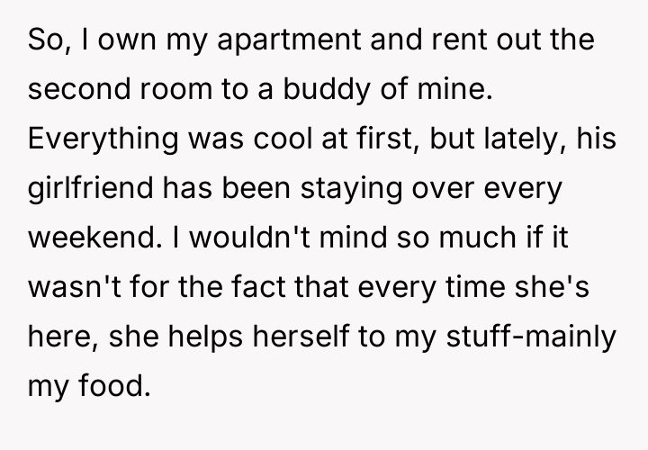 AITA for telling my roommate his girlfriend can’t stay over every weekend after she ate all my food—again?