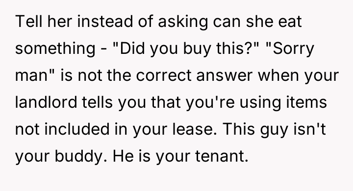 The debate centers on whether shared living arrangements imply an unstated right for a tenant's guest to consume the owner's resources.