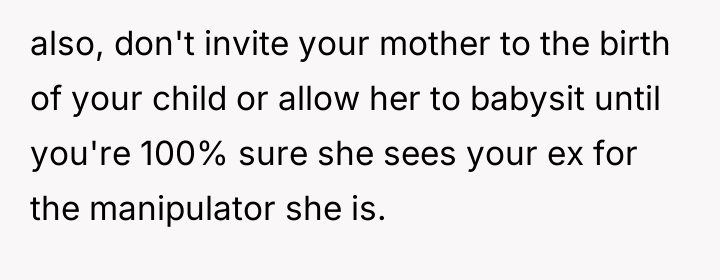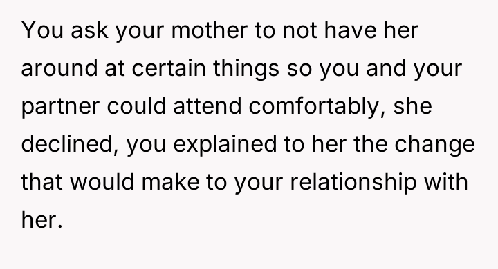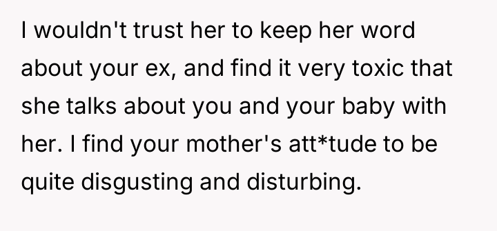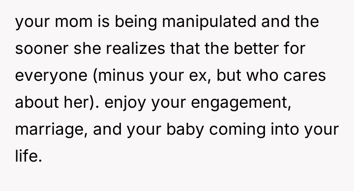 AITAH for threatening to ban my mother from my wedding and meeting her grandchild if she doesn't cut off my ex-girlfriend?