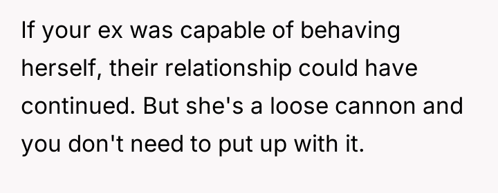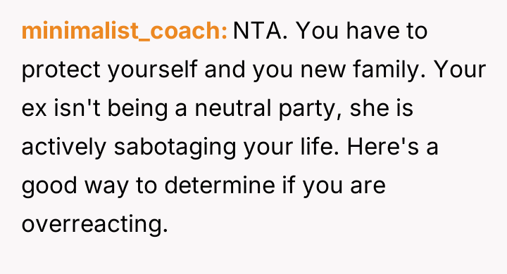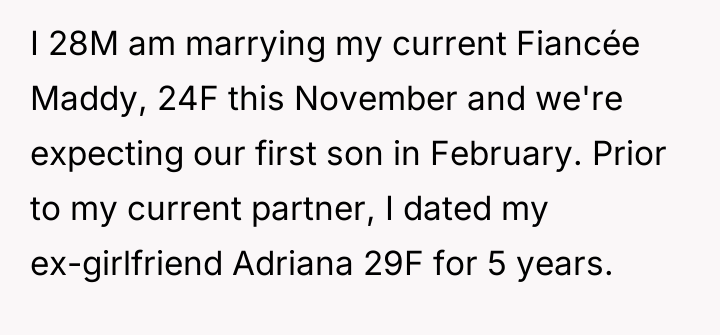 The original poster (OP) feels justified in taking strong action to protect his new family unit from harassment by his ex-girlfriend, Adriana.
