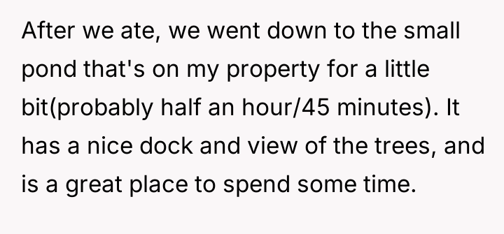 Surrounded by loved ones and the gentle rustle of nature, the day unfolded with simple joys — a shared meal, the serene pond, and the comfort of home. But beneath the calm surface, an unexpected disruption shattered the peace.