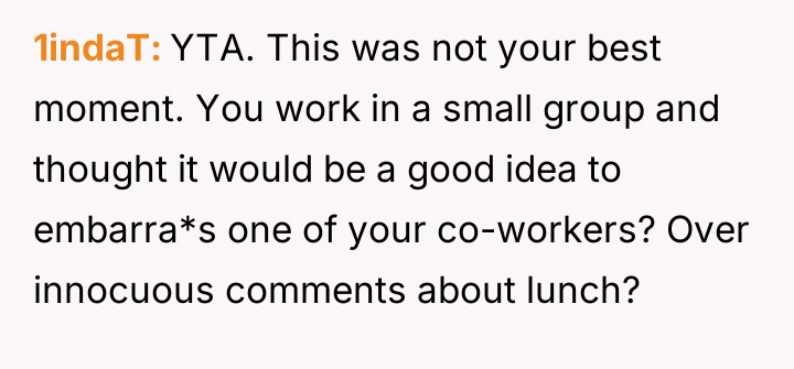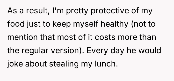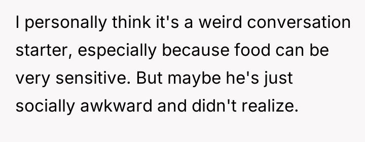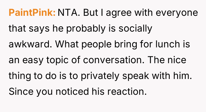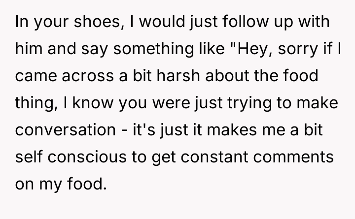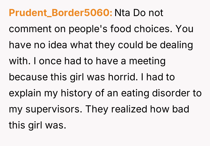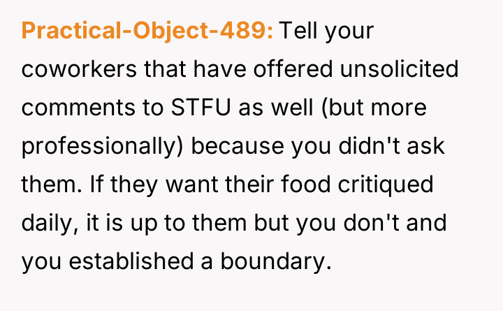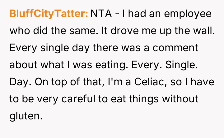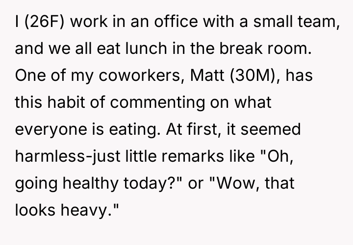 AITAH for telling my coworker to stop commenting on my food?