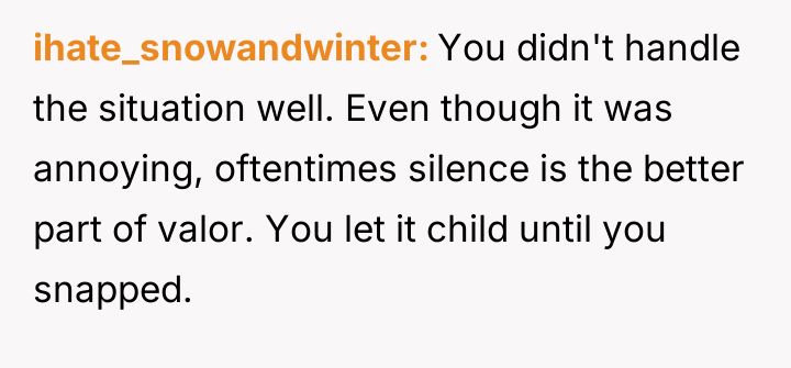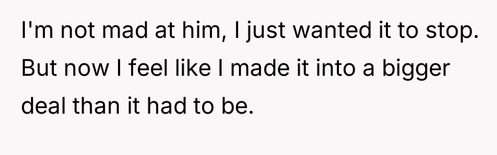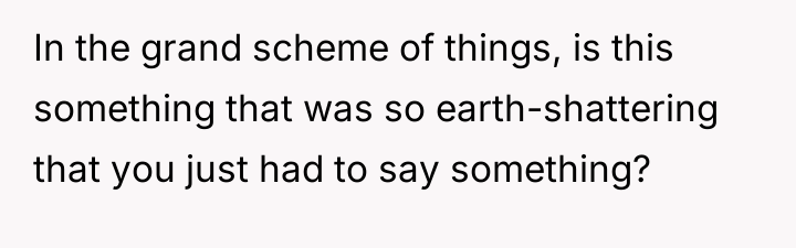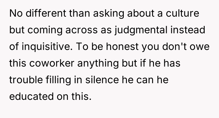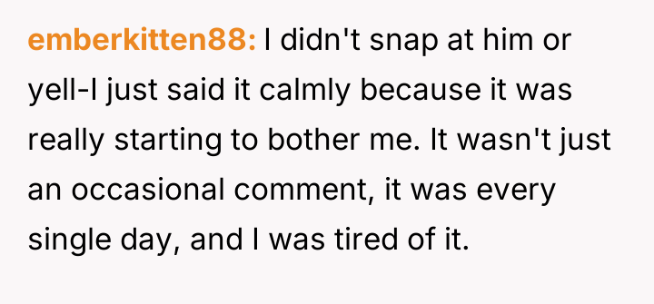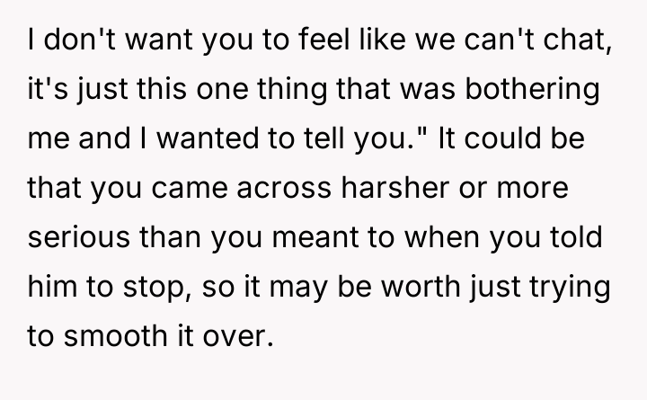 Considering the coworker claimed harmless intent versus the poster's need for peace, was the direct confrontation an overreaction that damaged workplace relations, or was it a necessary defense against daily, intrusive commentary?