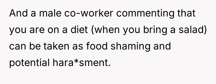 What began as harmless banter from Matt about a coworker’s food choices has slowly chipped away at her peace, turning daily meals into moments of discomfort and silent frustration.