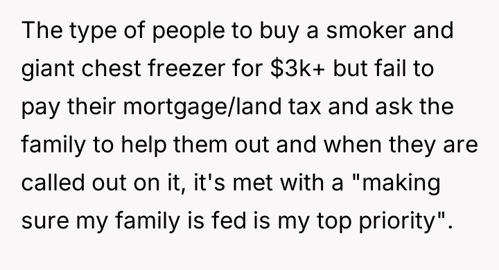 The debate centers on balancing personal financial boundaries against the perceived obligation of familial support.