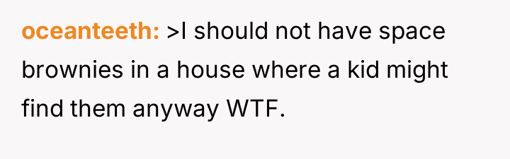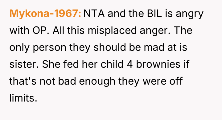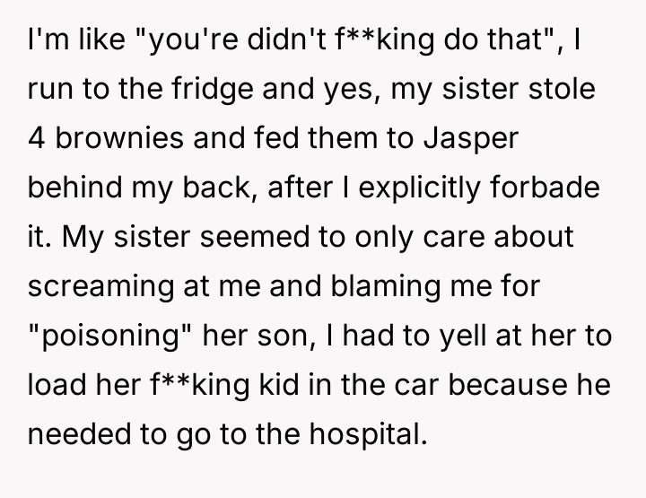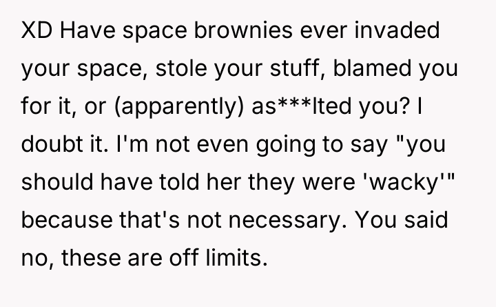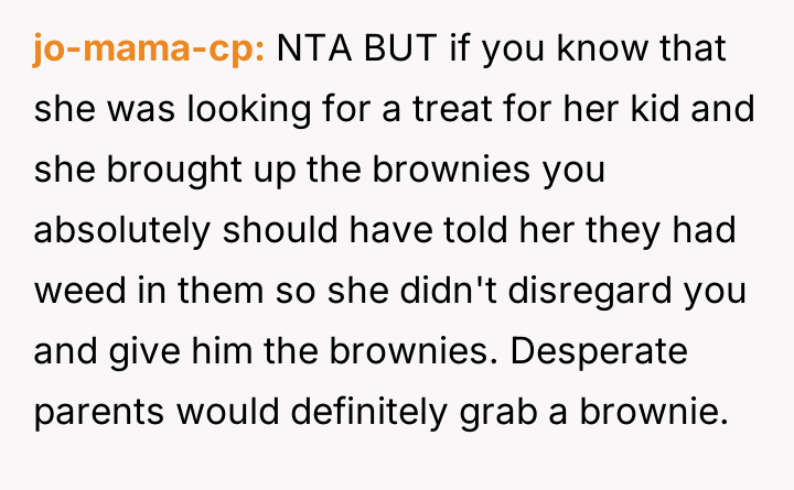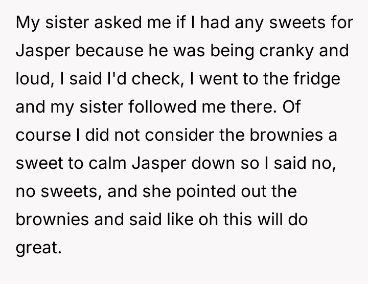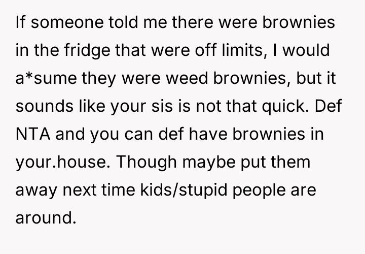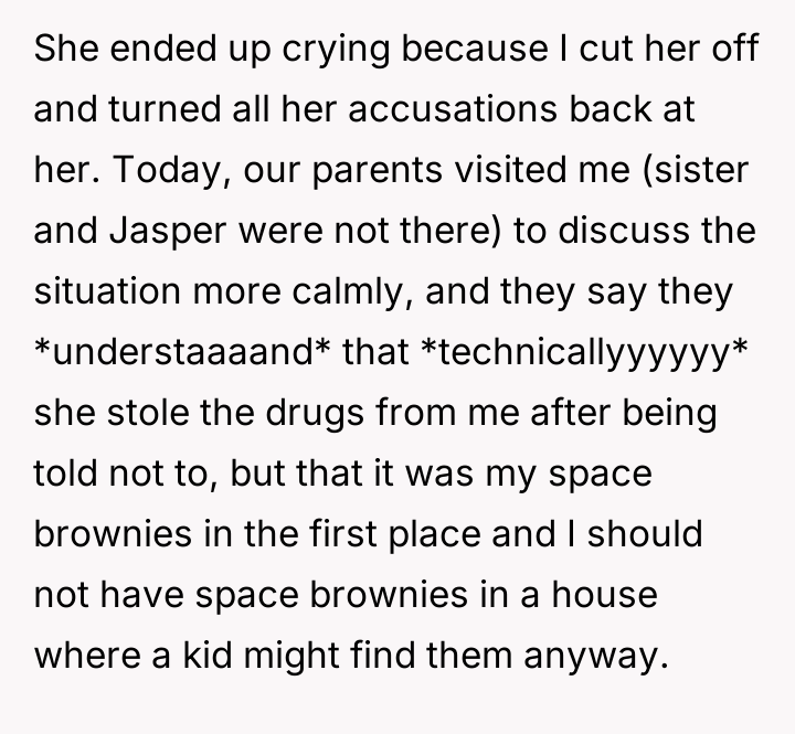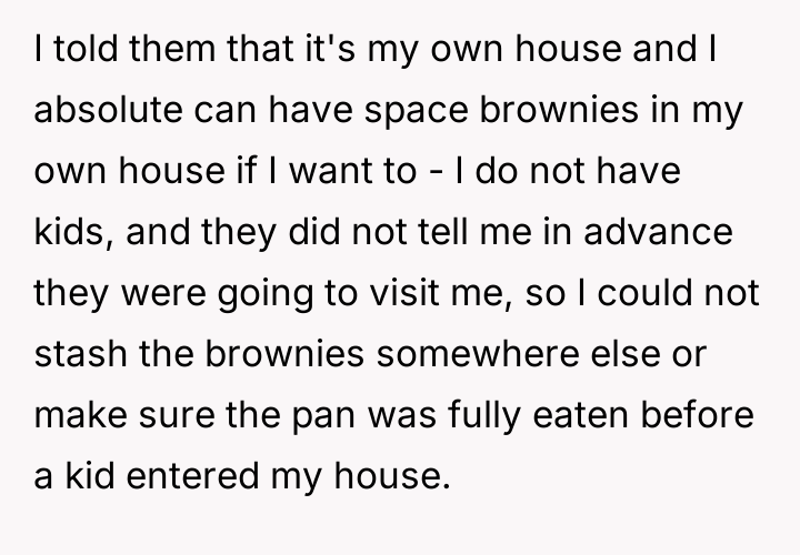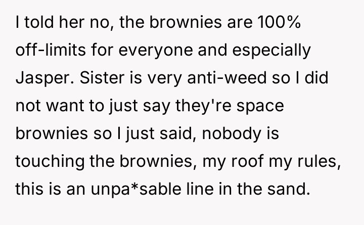 AITAH for blaming my sister, not me, when her son ate my space brownies?
