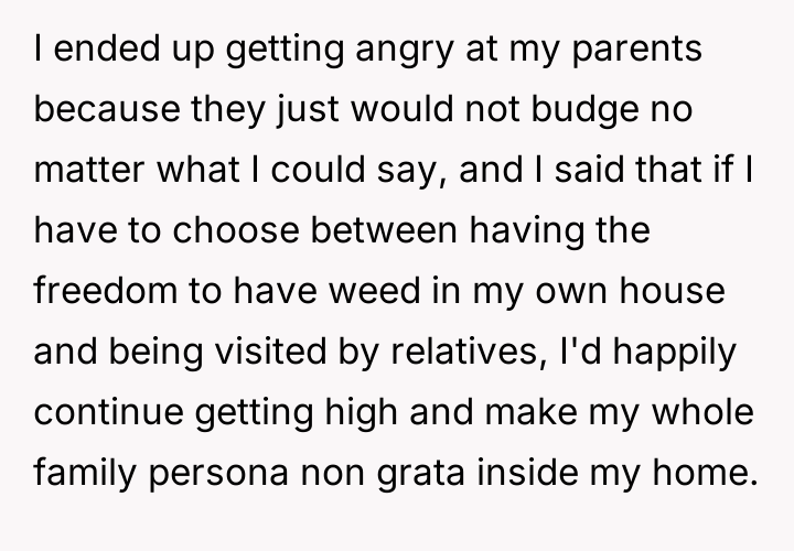 Her carefully crafted peace, symbolized by homemade marijuana-laced brownies, becomes the battleground for respect and boundaries, thrusting her into a tense confrontation with those she loves most.