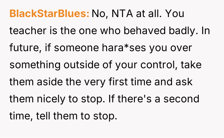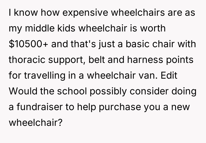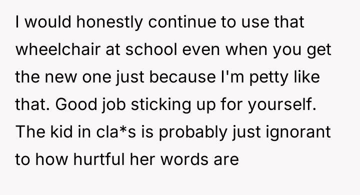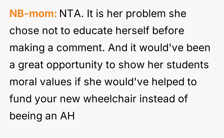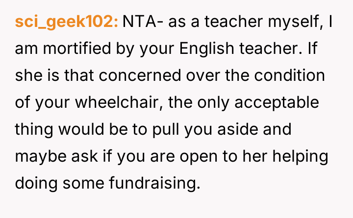 AITA for telling the teacher to stop making comments on my wheelchair?