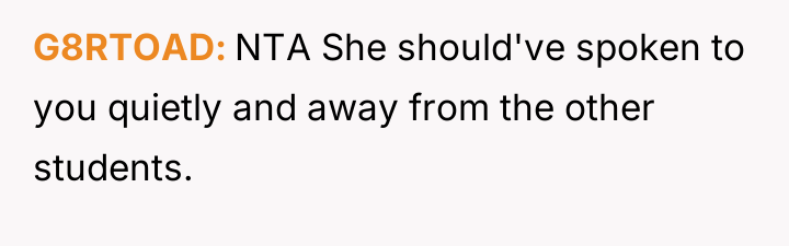 Was the OP justified in aggressively confronting the teacher regarding the expense and persistence of the commentary, or did this confrontation cross a line into inappropriate student behavior given the context of a classroom setting?