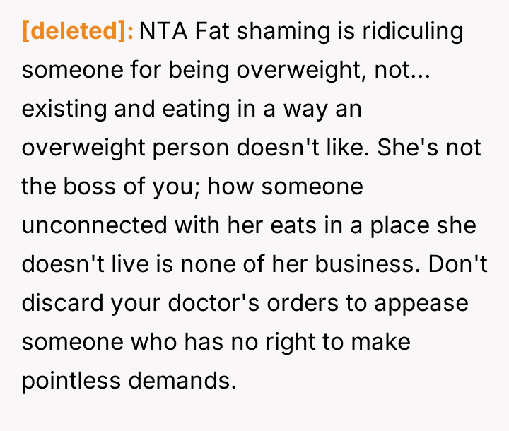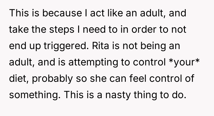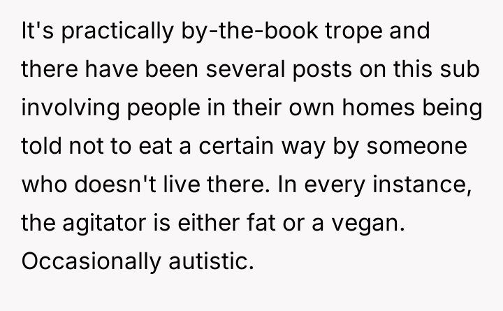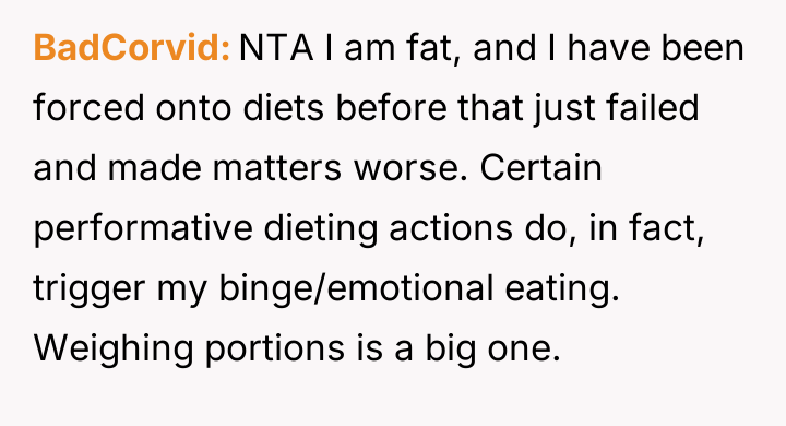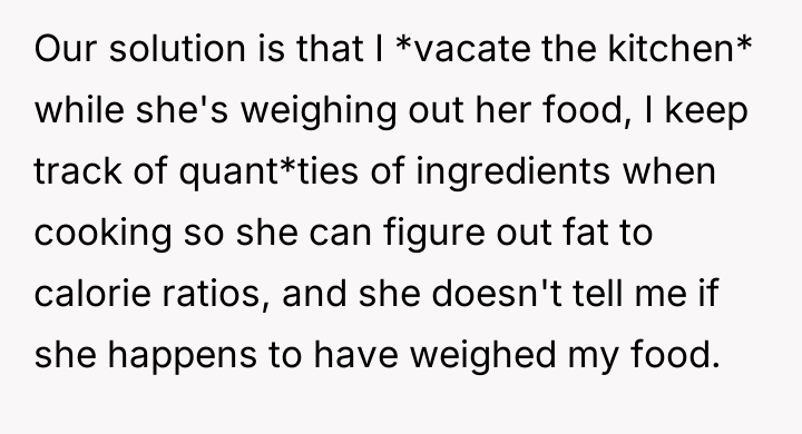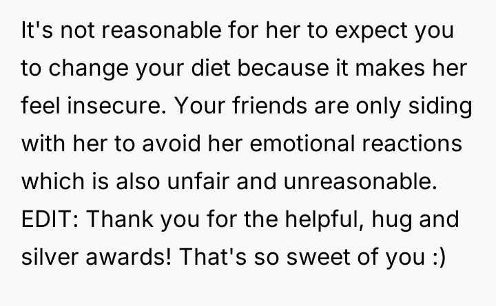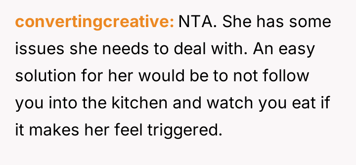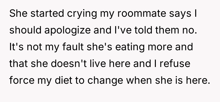 AITA for refusing to help roommate's girlfriend feel less triggered over my diet