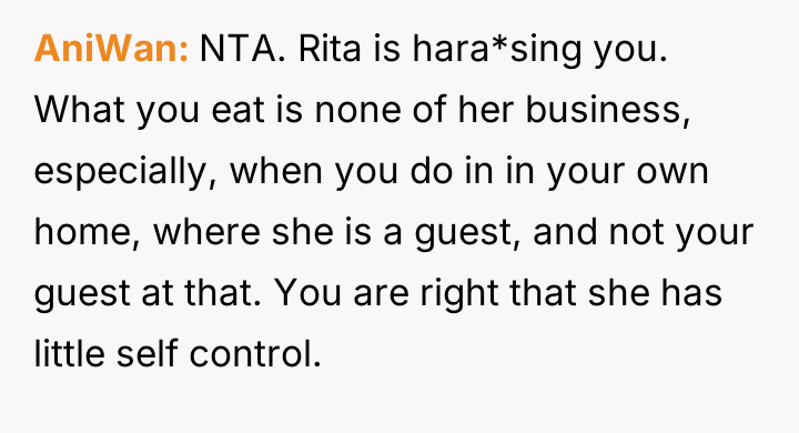 Is the OP justified in prioritizing their documented health needs and refusing to alter their diet based on the emotional reactions of a non-resident guest, or does the social responsibility in a shared living situation require the OP to moderate their visibility to avoid causing significant distress to others?
