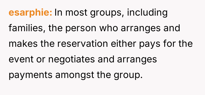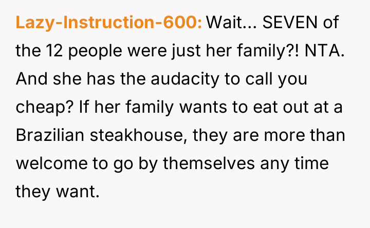 The original poster (OP) recounted a situation involving a reservation made by their sister for a large group dinner at a Brazilian steakhouse for twelve people.