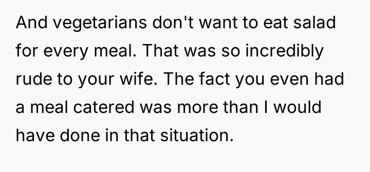 Should the OP have insisted on a compromise location or was catering the only reasonable choice given the circumstances?