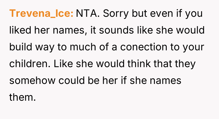 AITA for telling my sister who can't have kids that she does not get to be a part of naming mine and my wife's babies?