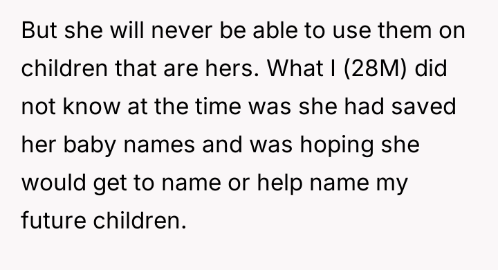 She clings to the possibility of naming their daughter, a fragile thread connecting her to the motherhood she yearned for but never had, and the subtle disappointment in her eyes speaks volumes of love, loss, and unspoken dreams.