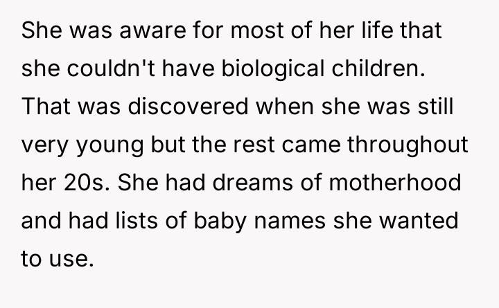 Born without the organs to bear children and barred from adoption due to health uncertainties, her dreams of nurturing life were carefully tucked away alongside lists of cherished baby names, symbols of a future she hoped to one day share.