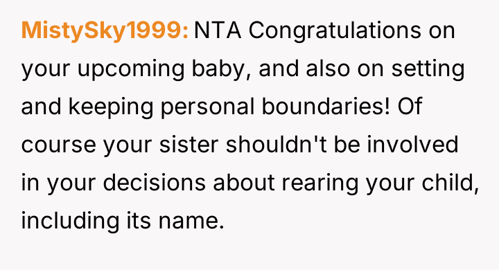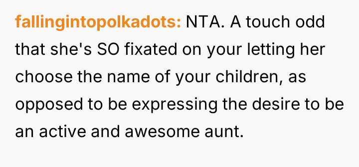 Is the OP justified in firmly setting a boundary that only he and his wife will name their child, prioritizing parental autonomy over accommodating the sister's emotional needs regarding her inability to have children, or is the OP being unnecessarily cruel by denying his sister a cherished, meaningful form of involvement in the next generation?