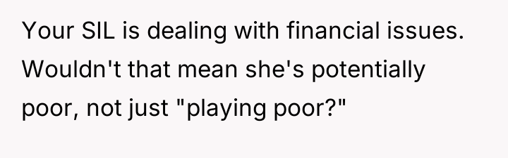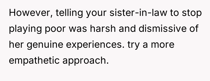 AITA for telling my sister-in-law to stop “Playing poor” around my kids?