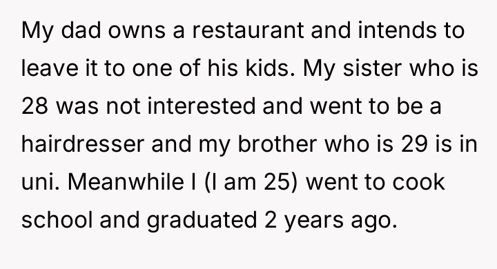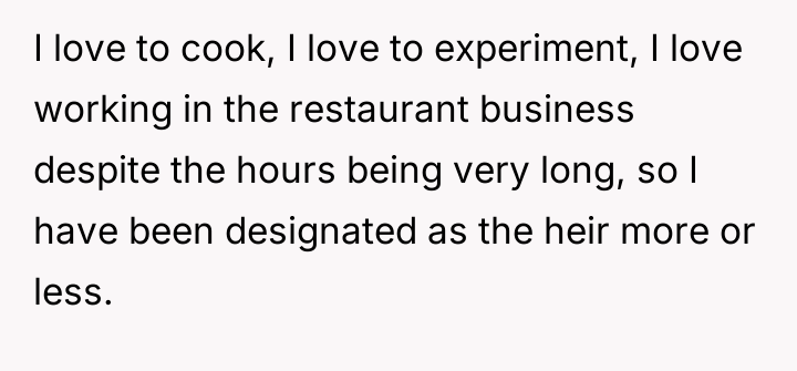 While his siblings carve paths far from the kitchen, he embraces the relentless grind and passion that fuels the business, transforming it with creativity and grit.