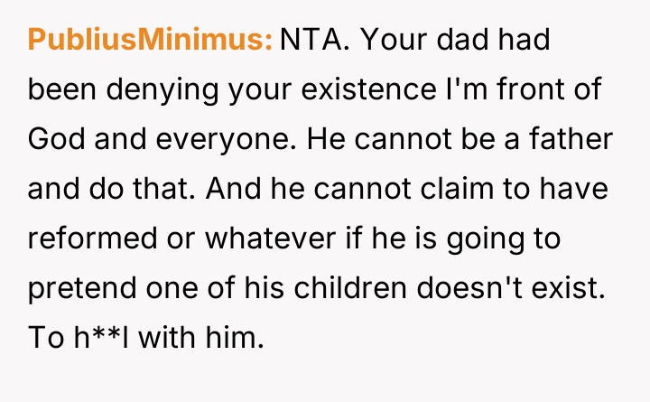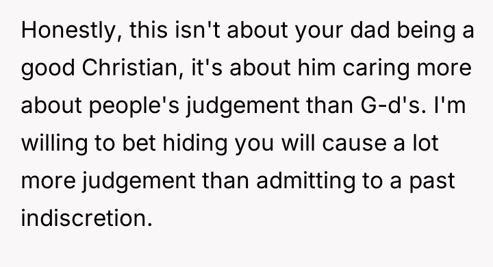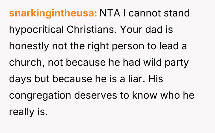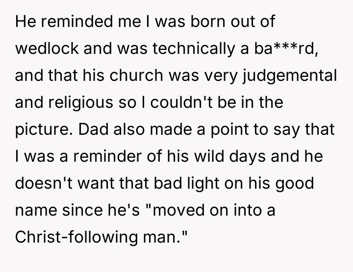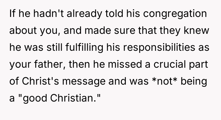 The original poster (OP) acted out of a clear desire for familial recognition and inclusion, directly challenging her father's attempt to compartmentalize her existence due to his public religious standing and past choices.