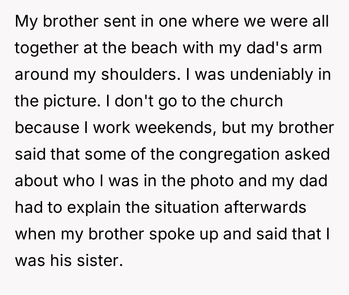 AITA for purposefully changing the picture submitted to my dad's church to include me?