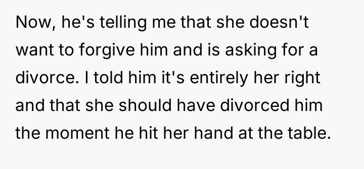 AITA for telling my friend that his wife has every right to divorce him after what he did