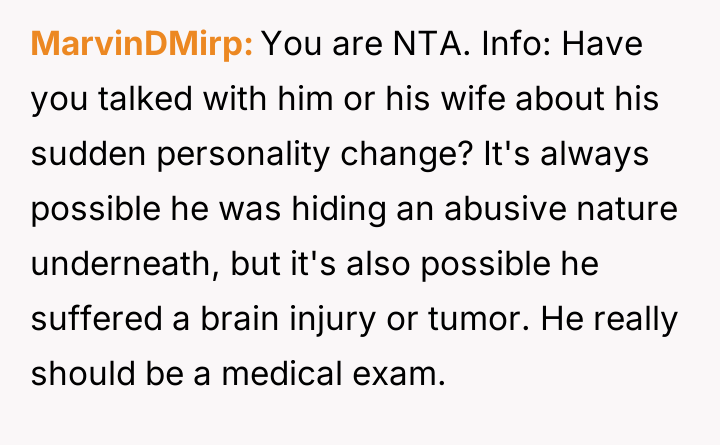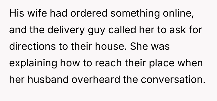 More recently, the friend falsely accused his wife of cheating after overhearing her giving directions to a delivery driver, leading to her requesting a divorce, leaving the narrator to question if their blunt response to the friend was appropriate.