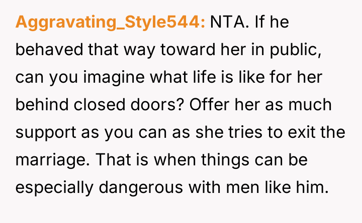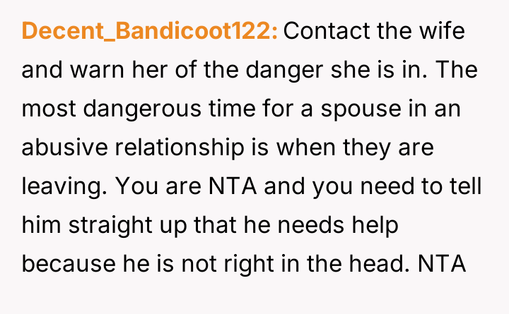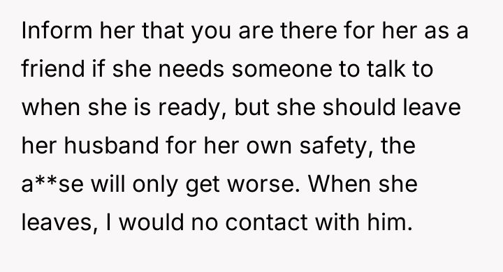 The core question for debate is whether the narrator was wrong (AITAH) for directly telling their friend that the wife is completely justified in leaving him, especially since the narrator believes the marriage should have ended the moment the physical abuse occurred, versus whether this directness was an unwarranted intervention.