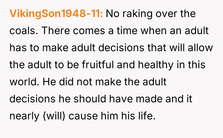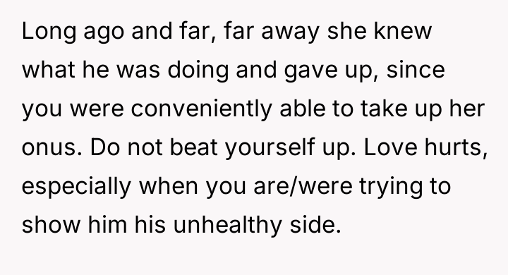 Her refusal to enter his chaotic world that night was not coldness, but a heartbreaking surrender to the limits of her endurance — a silent cry for herself amidst the storm of his suffering.