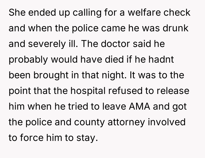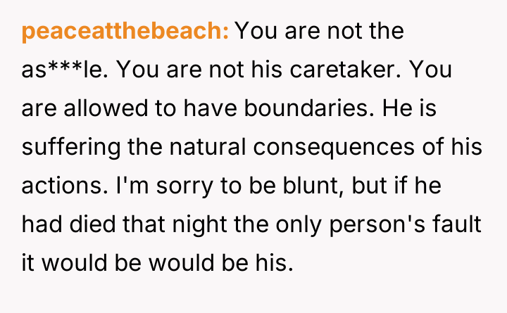 Was the poster justified in prioritizing their own need for rest and refusal to engage further in caretaking behaviors, despite the near-fatal result, or did the historical relationship and acknowledged concern override the right to maintain strict personal boundaries in that moment?