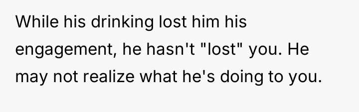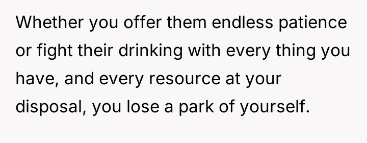 Despite their separation, the fragile threads of their bond kept them close, but each night brought a new battle with his drinking — a battle that left her exhausted, heartbroken, and desperately worn down.
