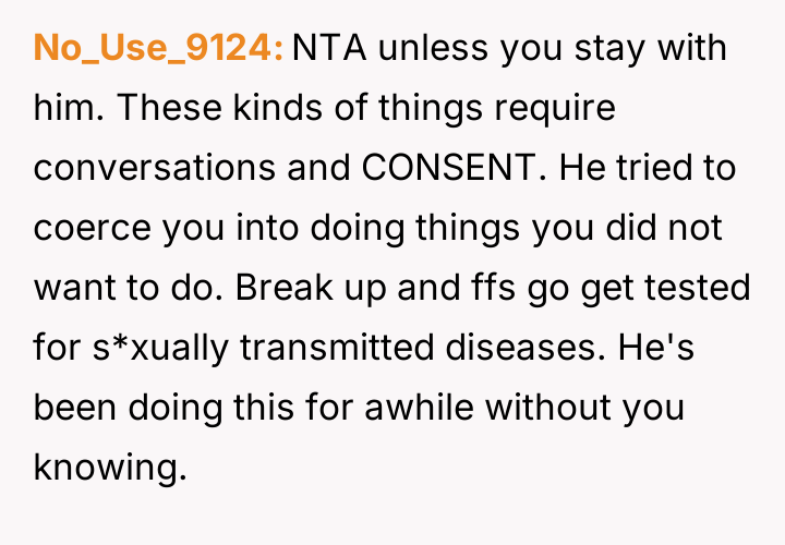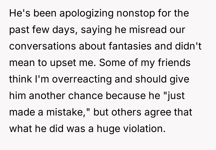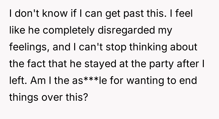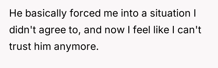 Given the severity of introducing a high-stakes sexual scenario without consent and his subsequent reaction of prioritizing his social standing over her distress, is the OP justified in questioning the entire foundation of trust in the relationship, or is this incident truly just an isolated, albeit major, mistake that can be forgiven and repaired?