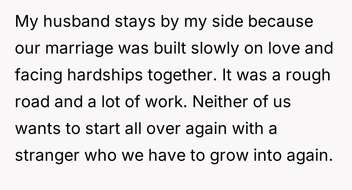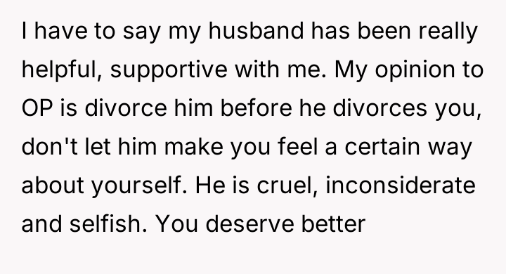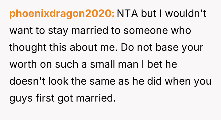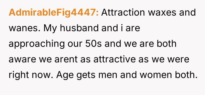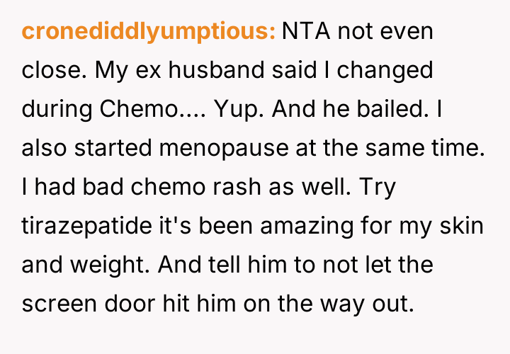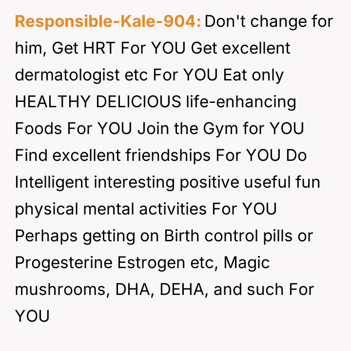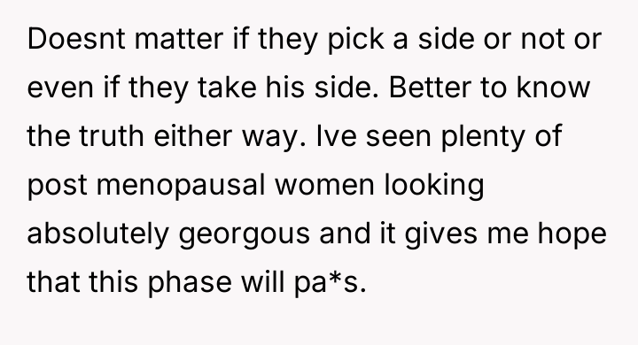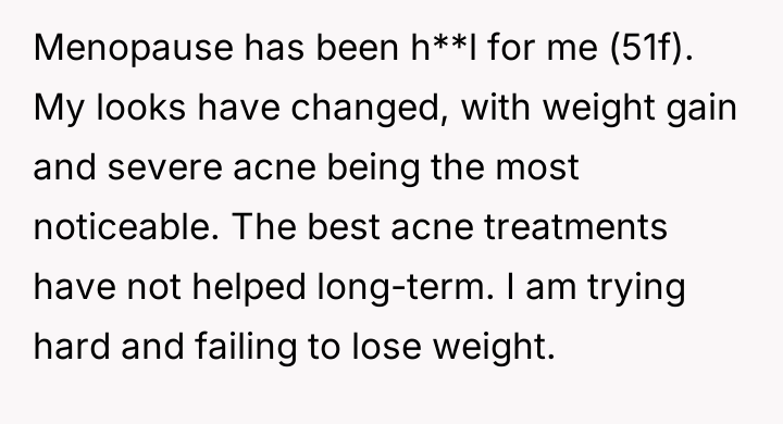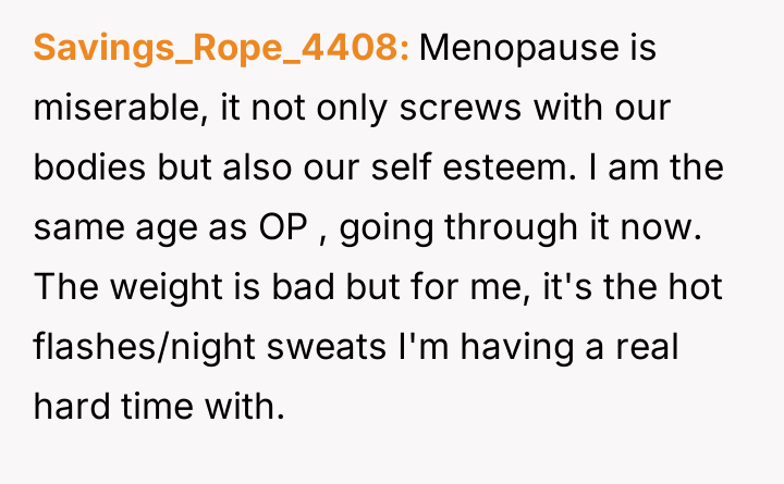 The original poster is facing significant distress due to challenging physical symptoms of menopause and feels emotionally betrayed when her husband admitted a loss of physical attraction.