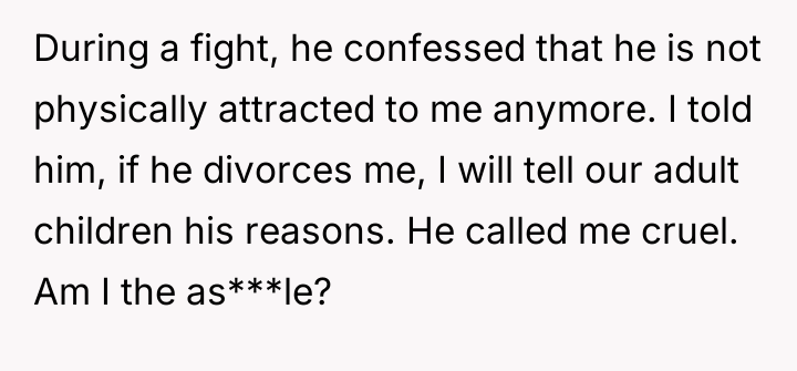 AITA for telling my husband if he divorces me because of my acne and menopause I will tell our adult children his reasons ?