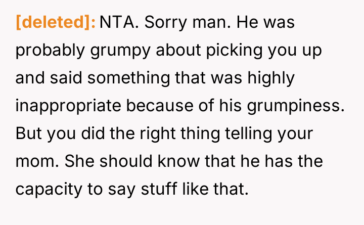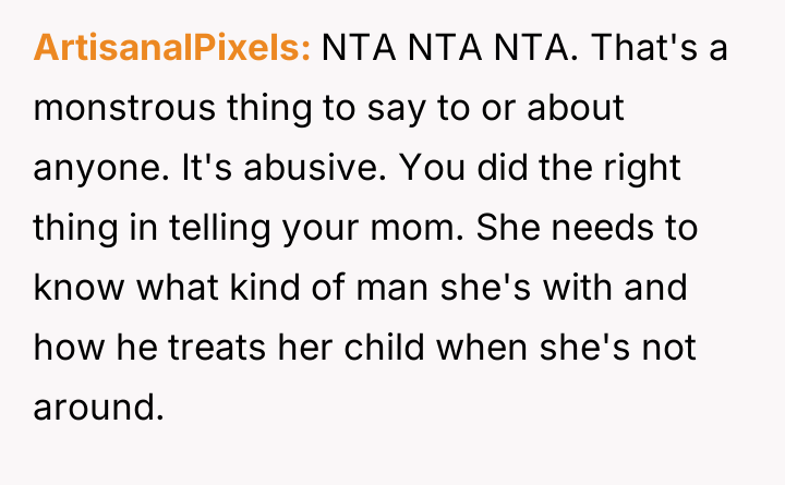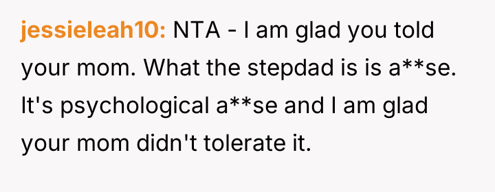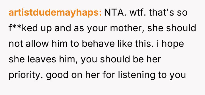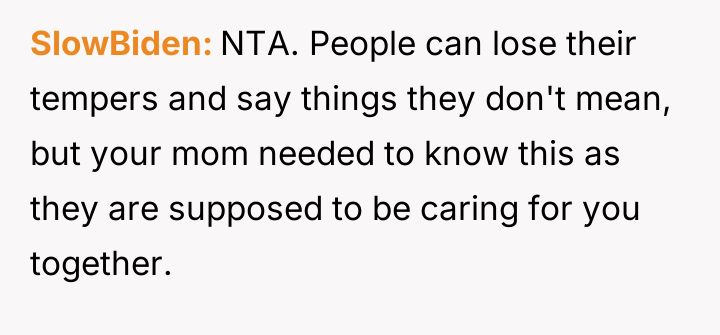 The original poster is dealing with the emotional fallout of a deeply hurtful comment made by their stepfather, leading to conflict between the parents.