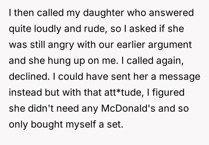 AITA for only buying myself McDonald's when my daughter hung up on my call?