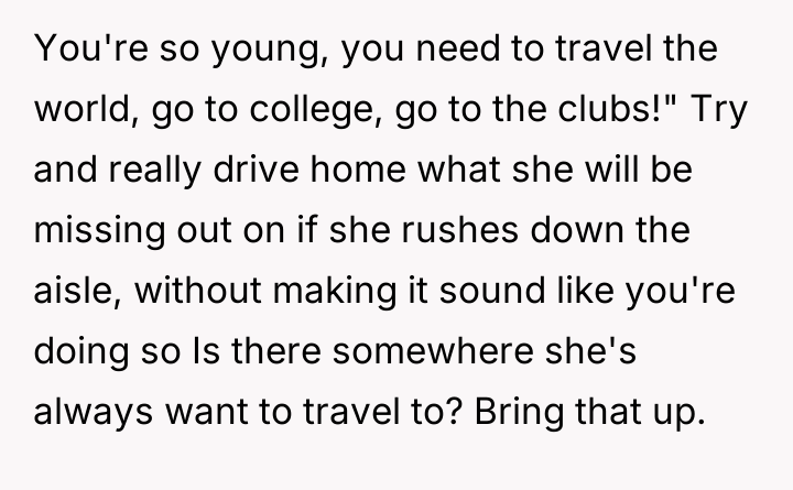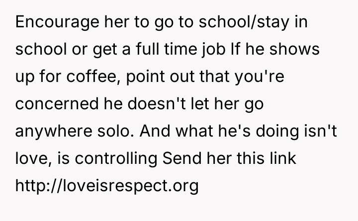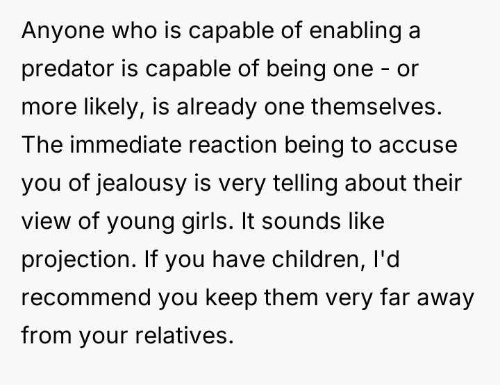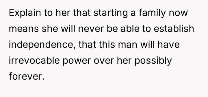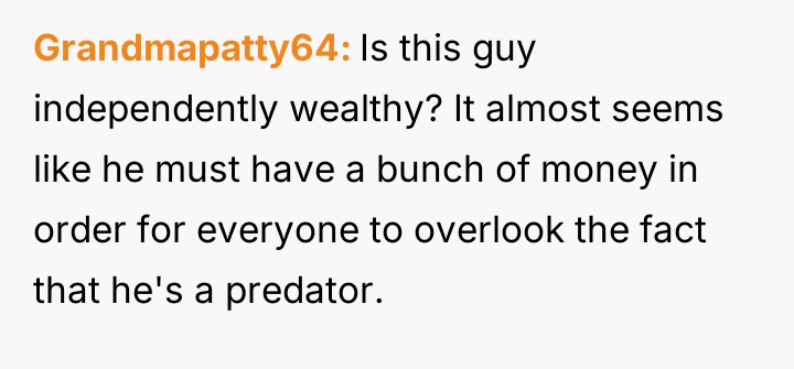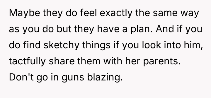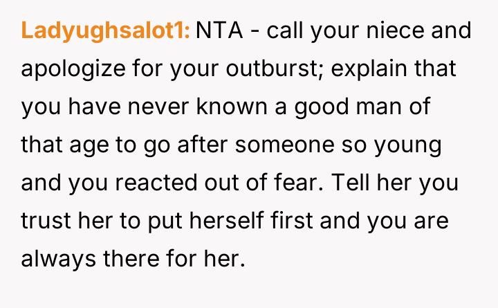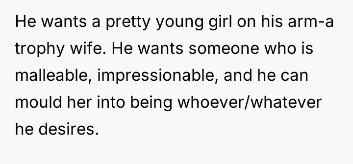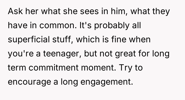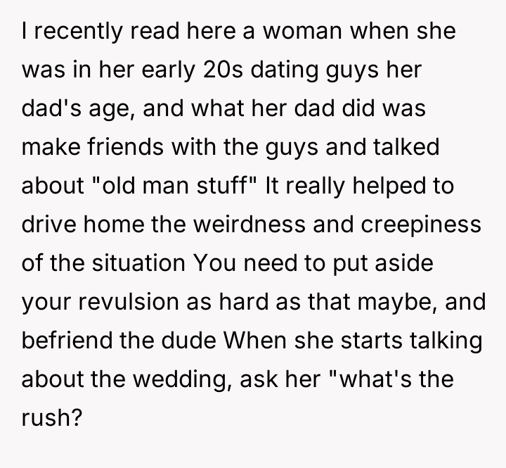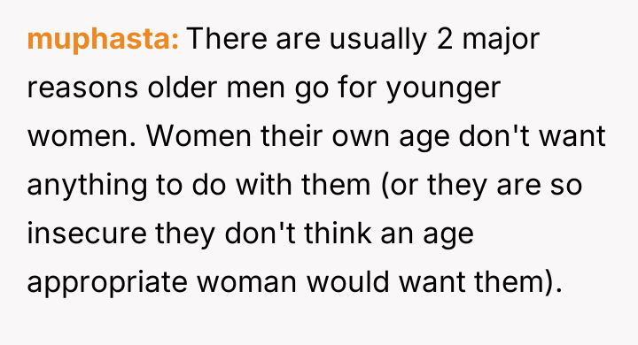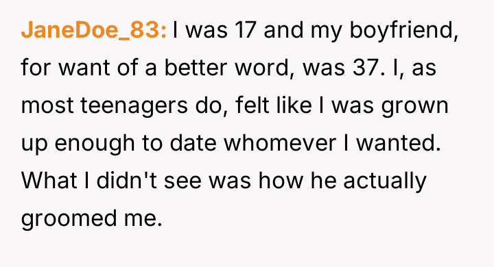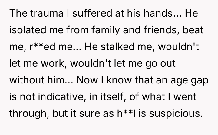 While the family focuses on the legality and the couple's happiness, the poster is focused on the potential for future harm and the perceived inappropriateness of the significant age difference.
