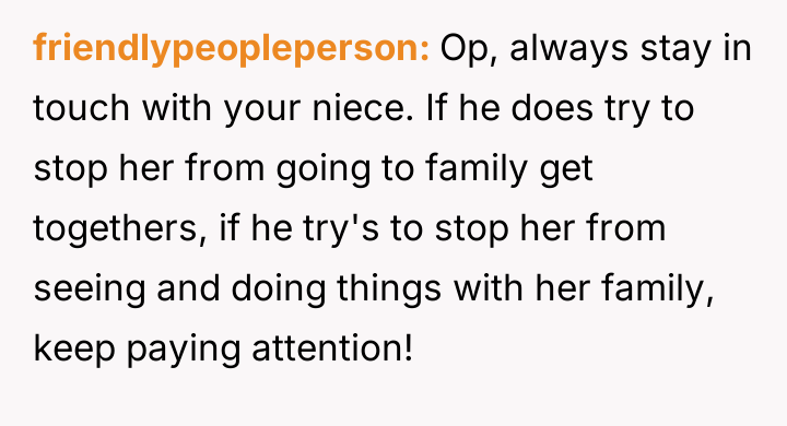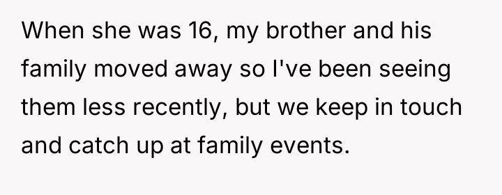 Although the brother's family moved away, they maintained contact, and the niece eventually mentioned having a boyfriend.